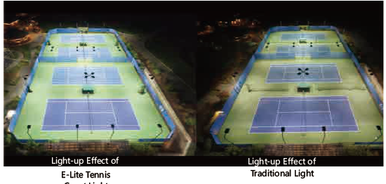 The highly efficient Glare-free Tennis Court Lighting deliver more foot-candles of illumination with fewer overall fixtures.